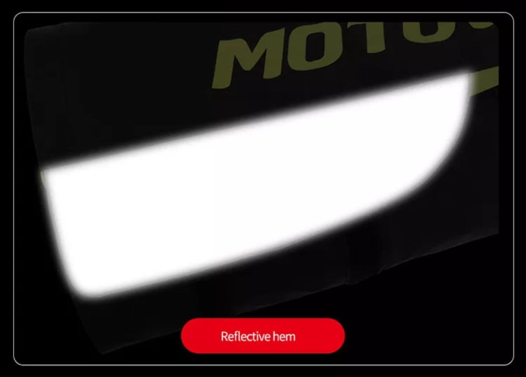 Áo có thiết kế phản quang giúp tăng nhận diện cho sản phẩm. Và gai xù giúp thu gọn sản phẩm, vừa vặn với người mặc hơn. Trông sẽ hợp thời trang hơn.