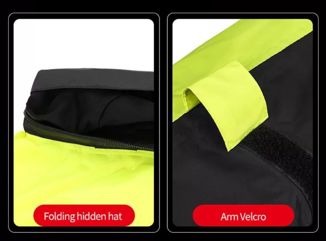 Phần cổ áo được thiết kế khá cao, anh em có thể tháo phần nón khi không sử dụng. Mà không sợ nước mưa sẽ thấm vào phần cổ áo. Thiết kế cổ áo ôm sát phần cổ người mặc và có thể điều chỉnh được nhờ vào gai xù.