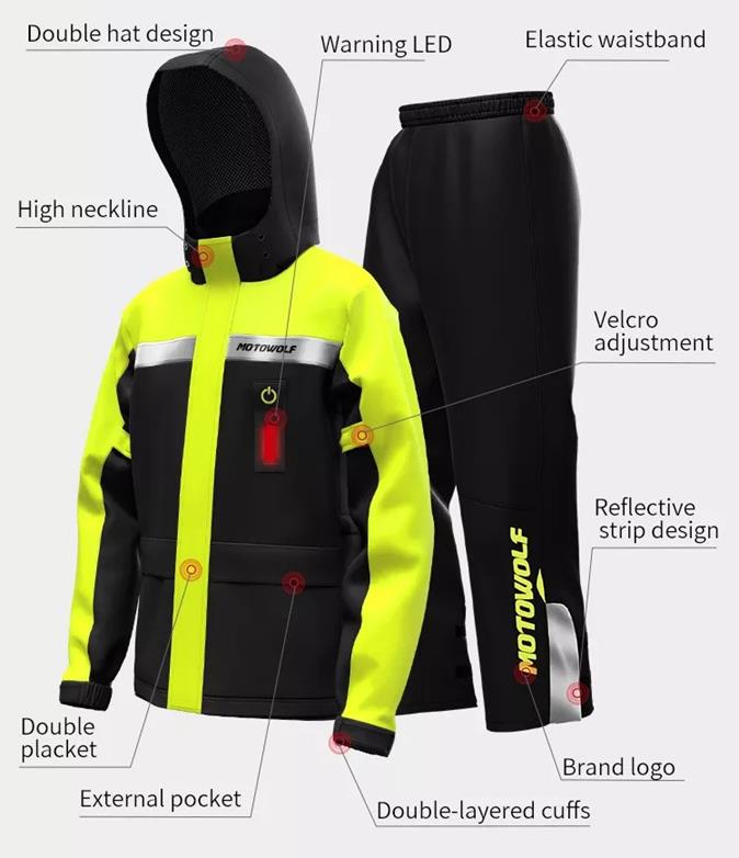 Thiết kế tiện lợi của áo mưa bộ Motowolf MDL 0402
