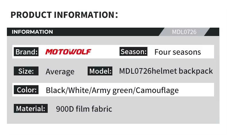 Thông số kỹ thuật Balo Đựng Mũ Motowolf MDL 0726
