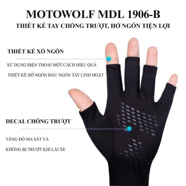 Bên cạnh thiết kế xỏ ngón, hỗ trợ cầm nắm dễ dàng, sử dụng điện thoại,… Sản phẩm còn được tích hợp thêm phần Decal chống trượt ở lòng bàn tay. Giúp tăng độ ma sát và hạn chế trượt khi lái xe.