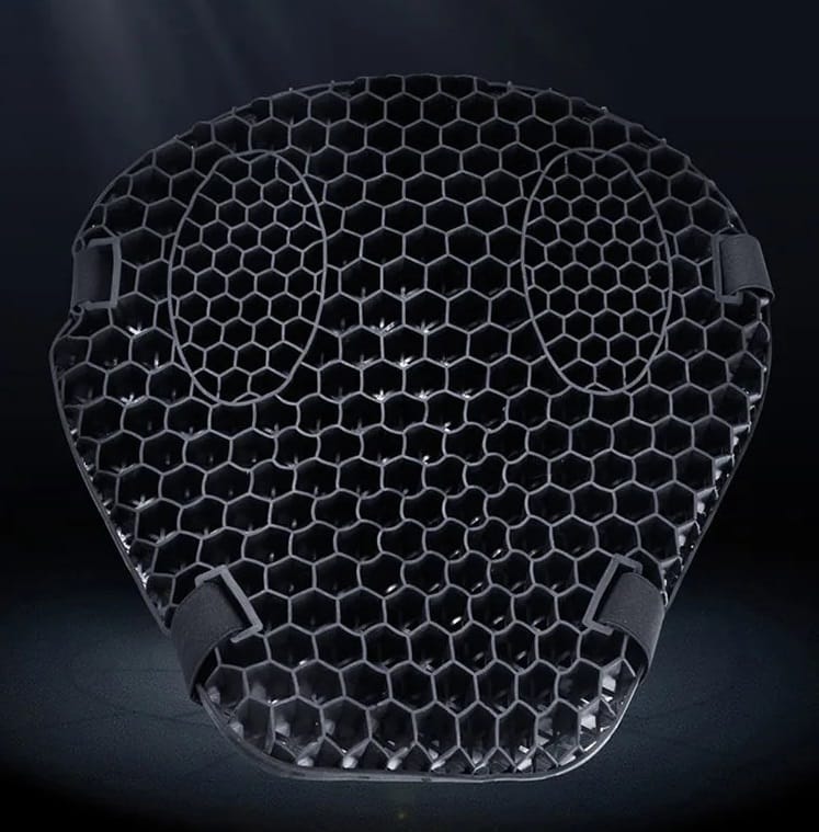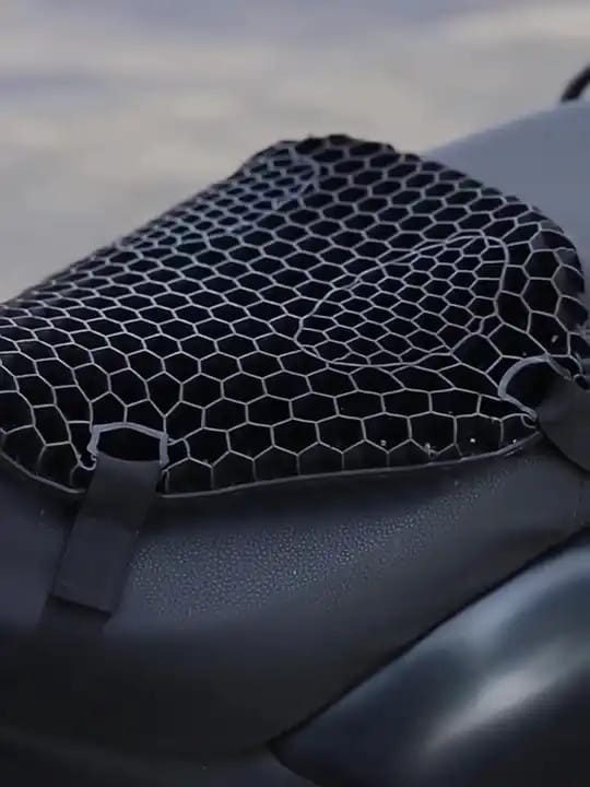 Đệm yên xe máy với thiết kế dạng tổ ong 3D gồm các ô nhỏ hình lục giác xếp chồng lên nhau. Thiết kế này mang lại nhiều lợi ích cho người sử dụng, bao gồm: