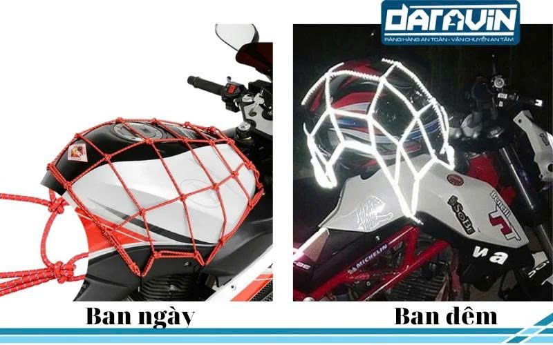 Mô tả : Lưới Thun Ràng Đồ Xe Máy Phản Quang Daravin dùng để ràng trước bình xăng hoặc sau baga có thể ràng được nhiều đồ vật như : Balo, nón bảo hiểm, phụ kiện,…