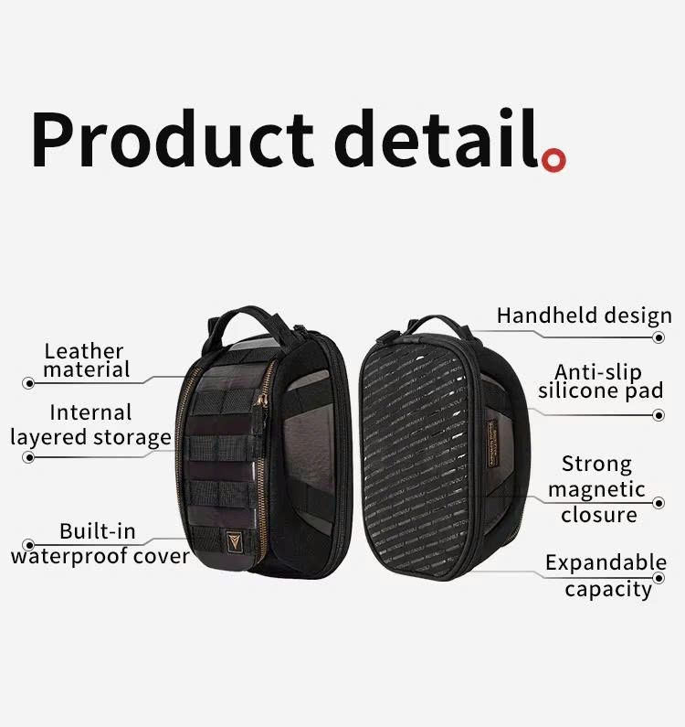 Túi Hít Bình Xăng Motowolf MB11 được trang bị hệ thống nam châm từ tính mạnh mẽ. Bao gồm 8 cầu nam châm, mỗi cầu 5 lõi. Được phân nhánh đều khắp phần tiếp xúc của túi. Giúp túi luôn bám chắc vào bình xăng xe mà không lo rơi rớt trong suốt hành trình. Anh em có thể thoái mái sử dụng ở bất cứ địa hình nào. Dù là di chuyển trên đường bằng phẳng hay gập ghềnh. túi vẫn sẽ giữ nguyên vị trí cố định, đảm bảo an toàn cho đồ đạc.