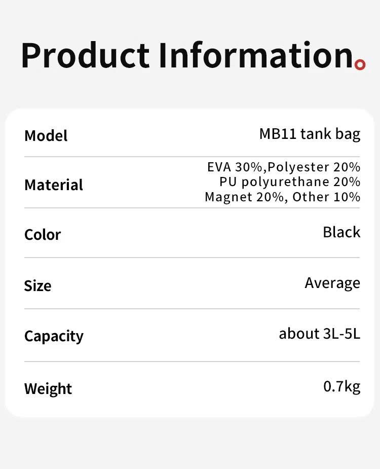 Túi Hít Bình Xăng Xe Máy Motowolf MB11 được cho ra mắt với 3 vật liệu chính là đệm EVA, Polyester, PU, Magnet và Silicone.