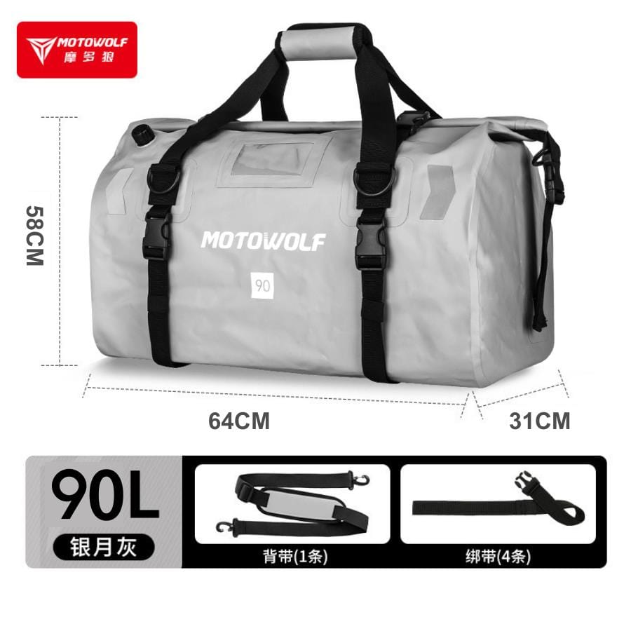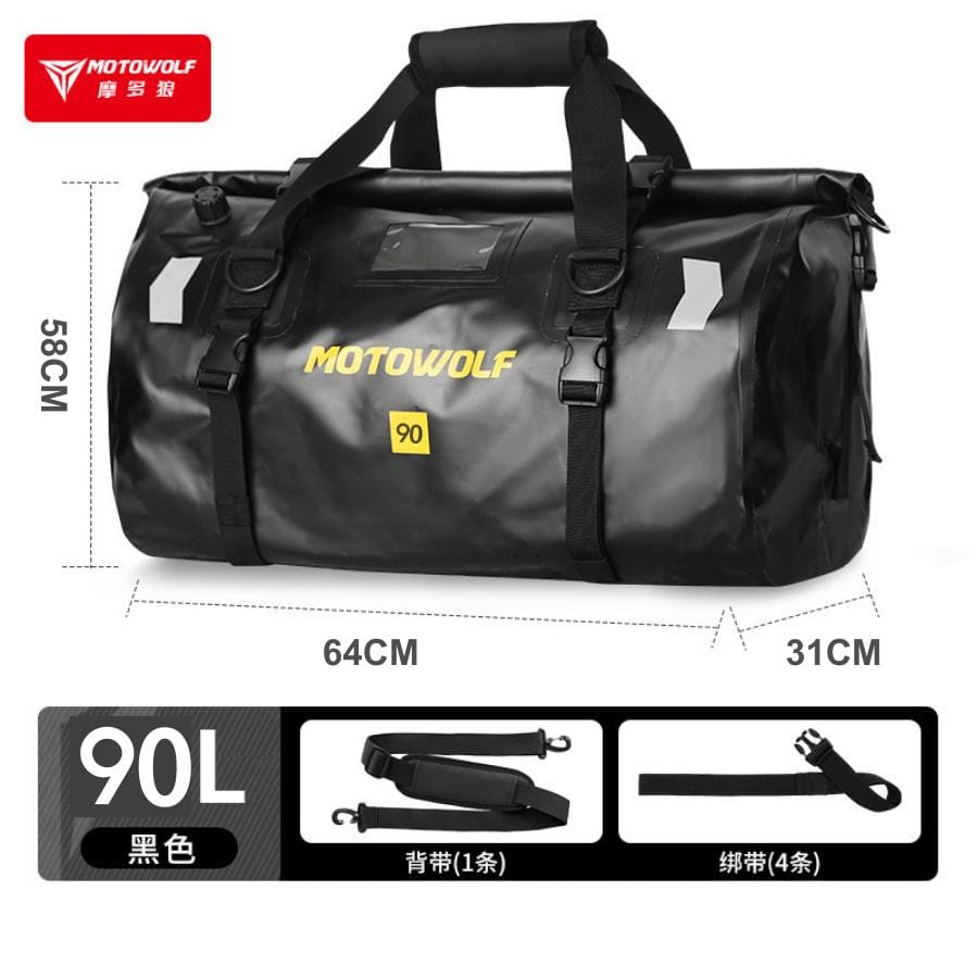 Túi Motowolf MDL 0717 90 Lít Vàng mặc dù mới được công ty Motowolf cho ra mắt gần đầy. Nhưng lại được anh em Biker đón nhận nồng nhiệt. Túi được sản xuất với 9 màu sắc là đen, đen vàng, đen đỏ,… Điểm đặc biệt, với sản phẩm này là công ty đã thay thế dây ràng thành dây gài đơn giản và dễ sử dụng. Túi với khả năng chống nước 100%, dung tích 40L, 66L và 90L. Thích hợp cho các chuyến đi phượt dù ngắn hay dài của anh em.